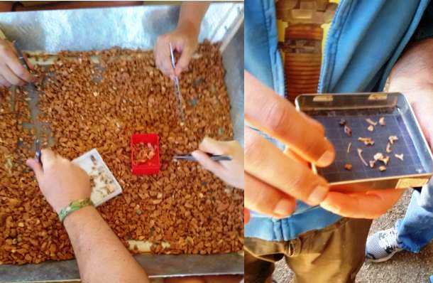Por último, pero no menos importante, hay que hablar del trabajo del equipo del río que realiza el lavado, tamizado y triado de los sedimentos para recuperar miles de fósiles de microfauna, que permiten la datación bioestratigráfica y el entendimiento de los ambientes donde vivían los ocupantes de Atapuerca.