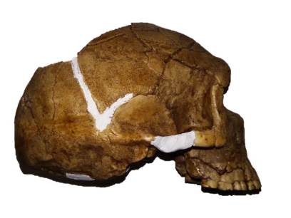 Neanderthal 1, lateral view, front/left: the pieces of the temporal and zygomatic bone discovered in 2000. Credit: Hans Weingartz