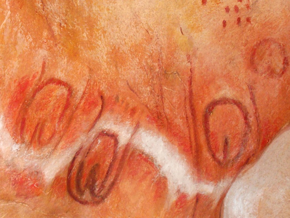 Cerca del vestíbulo de la entrada se encuentran las primeras pinturas, apartadas del exterior. En algunas de ellas destaca el uso del pigmento violeta, característica muy peculiar en esta cueva.