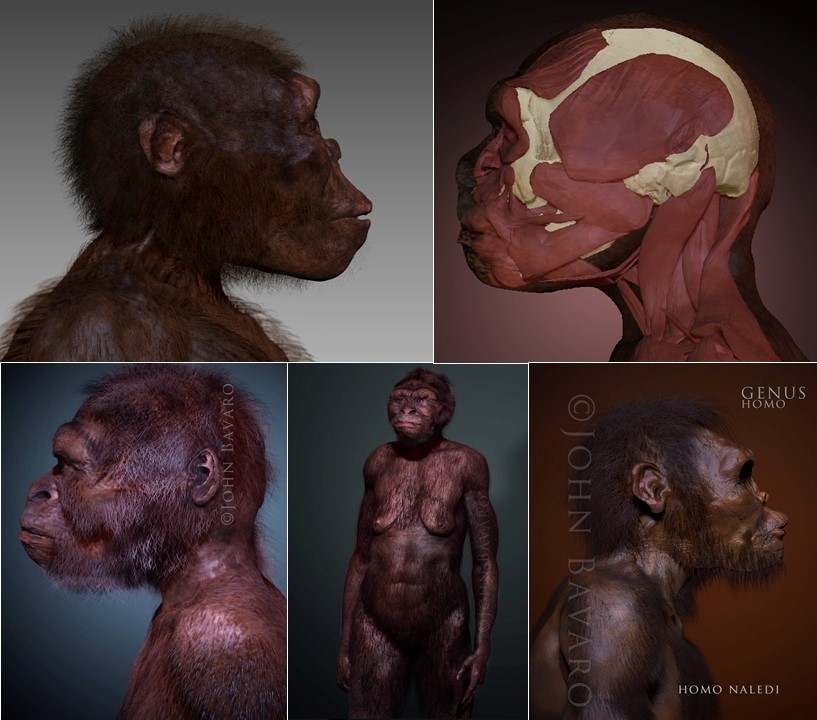 In that case of Homo naledi. As an artist and as a human I always wonder about anthropogenesis-as a philosophical concept, when did someone become “human” which leads to my point about the “moment” the continuum of consciousness. I’m assuming that they not could breed with Homo sapiens. (Who knows though)! But let’s say that they couldn’t. Then this goes back to what does it mean to be human. Of course this opens up a can of worms. Those who are in this field of paleoanthropology see the problem as being a moot point philosophically and anthropologically (I do too), but an artist I really wonder about it from a purely physical perspective. Physically, when did the nose or the hair become human-like? I suspect it’s like anything else because it is gradual. Of course there’s evidence about body lice versus head lice, there’s also cues for the development, the skeleton and the skull i.e. nasal bones, for instance, chimps have a protruding mandible, flat nasal bone, smaller mastoid process, etc. But does a species like Homo naledi have body hair? If so how much? What about the face? I personally I prefer the simian-like version due to the evidence that it’s partially “hung out” in trees, and to the best of my knowledge, didn’t run like Homo erectus. But the face is human-like so who knows?