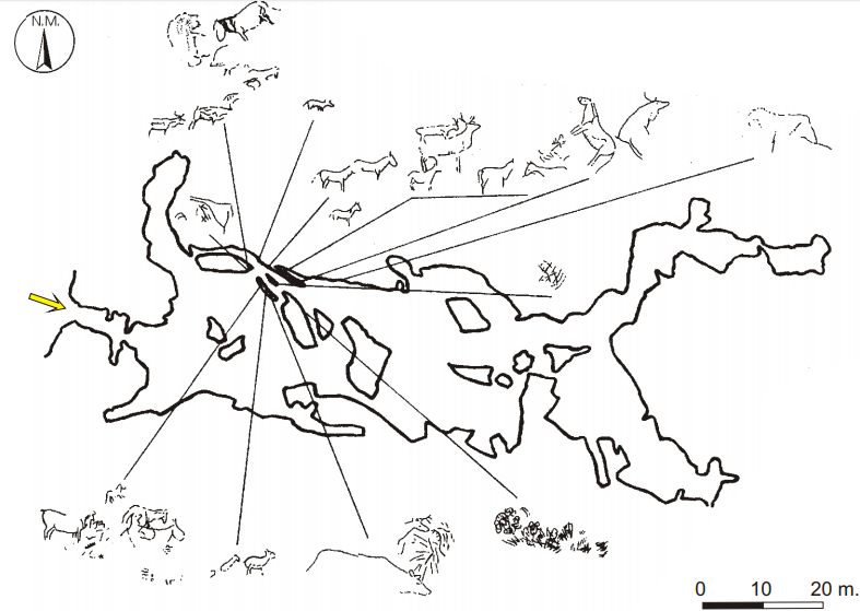 Plano de Las Monedas y situación de las pinturas. Imagen: Consejería de Cultura, Turismo y Deporte de Cantabria