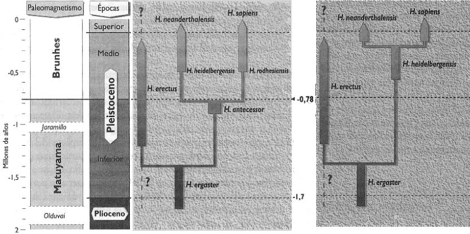 Por supuesto, también se habla de los hallazgos de Atapuerca, donde los autores son grandes protagonistas de su investigación. Destaco la mención a los primeros trabajos de datación para los restos humanos de la Sima de los Huesos: 300 ka, mucho más reciente que la revisada posteriormente de 430 ka (Arsuaga et al, 2014).
