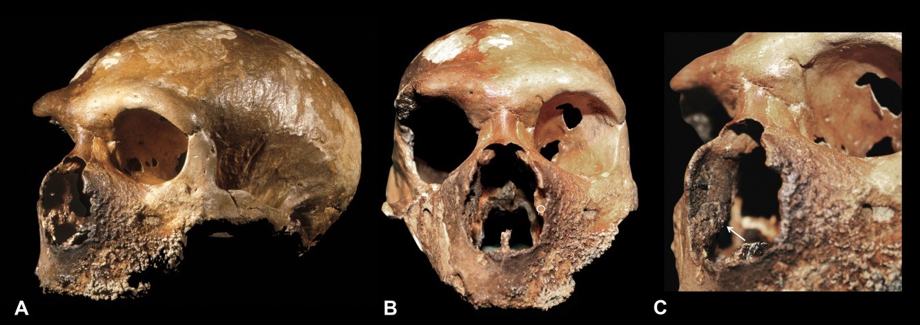 Guattari-1 neandertal (Monte Circeo). Crédito fotos: (A) Jeffrey H. Schwartz (B, C) Anthony S. Pagano