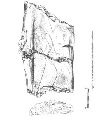 Tablita de Benot Ya’aqov. Crédito: Belitzky, S. et al. (1991). A Middle Pleistocene wooden plank with man-made polish. Journal of Human Evolution, 20(4)