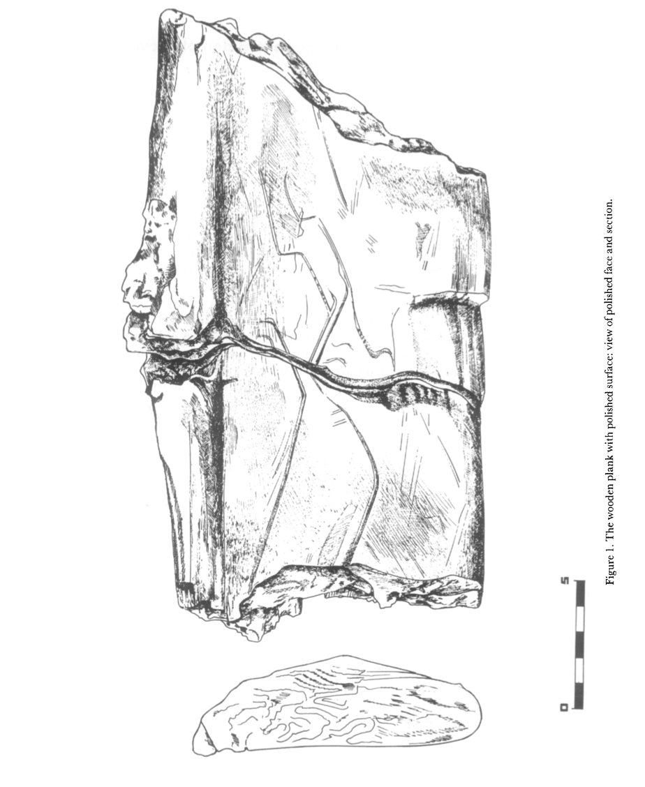 Tablita de Benot Ya’aqov. Crédito: Belitzky, S. et al. (1991). A Middle Pleistocene wooden plank with man-made polish. Journal of Human Evolution, 20(4)