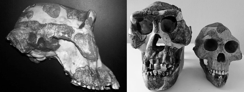 Cráneos de Au. afarensis macho AL 444-2 y hembra AL 288-1 (Lucy). Crédito: Roberto Sáez