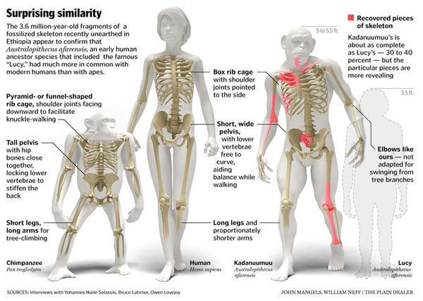 Es difícil volverse un fósil famoso viviendo a la sombra de Lucy. En el primer paper sobre Kadanuumuu, el equipo se refirió directamente a Lucy en el segundo enunciado del resumen del artículo, y la fotografía de Kadanuumuu es la clásica alusión al retrato icónico de Lucy: huesos dispuestos en posición anatómica contra un fondo de color negro.