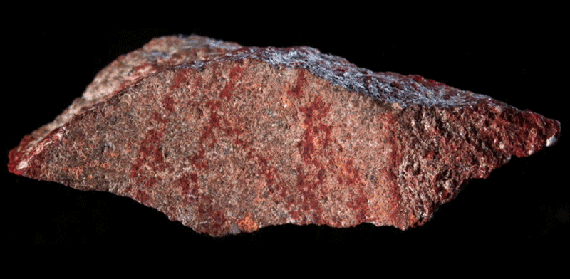 - Una nueva piedra grabada de 73 ka procedente de la cueva de Blombos, en Sudáfrica, se añade a la increíble colección de piezas adornadas con símbolos (conchas, piedras, huesos) que los humanos modernos elaboraron en aquel lugar hace entre 72-100 ka. Se trata de tres líneas rojas con líneas cruzadas y seis líneas separadas, que se grabaron con una punta de ocre de entre 1 y 3 mm de grosor. La terminación abrupta de las líneas en el borde indica que el dibujo continuaba sobre una superficie más grande [+info].