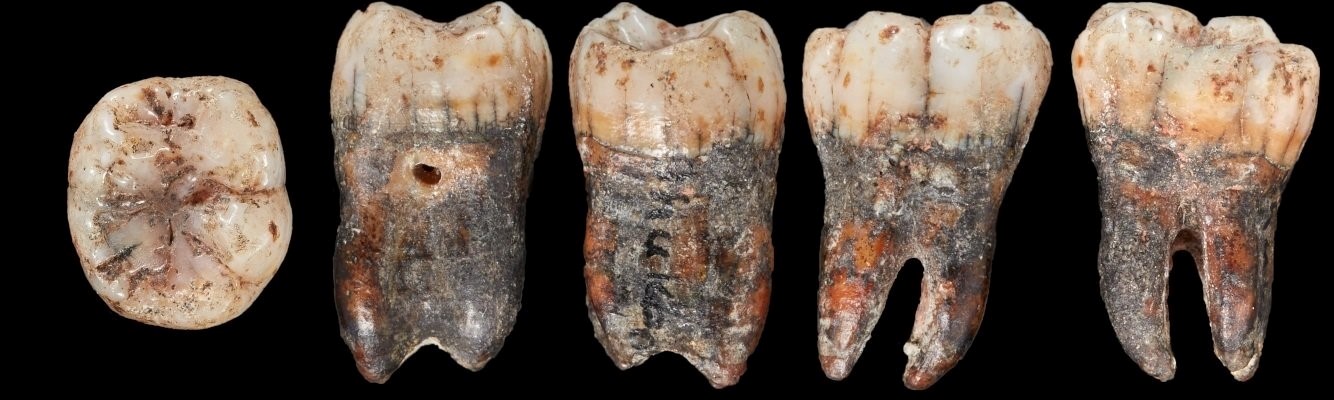 Tooth of a 9-year-old Neanderthal child (Shukbah Cave) © Trustees of the Natural History Museum, London © Blinkhorn, et al., 2021