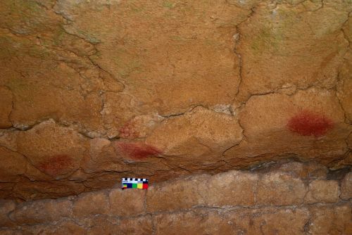 - Realmente no es un conjunto, sino una acumulación de conjuntos artísticos a lo largo del tiempo. En otras cuevas más pequeñas se pueden encontrar 20 o 30 elementos en una galería de unos 100 m, frente a los 900 elementos en los 2 km de Cudón. Probablemente hay que considerar Cudón como un sistema de cuevas con distintas bocas, por donde accedieron distintos grupos, y así se generó una acumulación. «Aunque todo tiene una apariencia similar, internamente vemos cosas distintas en puntos distintos: en algunas galerías hay mayoritariamente macarronis, en otras hay puntos, en otras hay manchas cuadrangulares o triangulares y en tinta plana, en otras se juntan distintos elementos… Esto se observa por grandes grupos de la cueva pero, cuando lo analizas internamente, es difícil identificar conjuntos por temas, técnicas o estilos para generar un estudio diacrónico. En todo caso, lo que sí parece claro es que Cudón se pintó a lo largo del Gravetiense, aunque empezaría probablemente a pintarse ya a finales del Auriñaciense. Lo que no parece que hay son expresiones gráficas del Solutrense o Magdaleniense», detalla Montes.