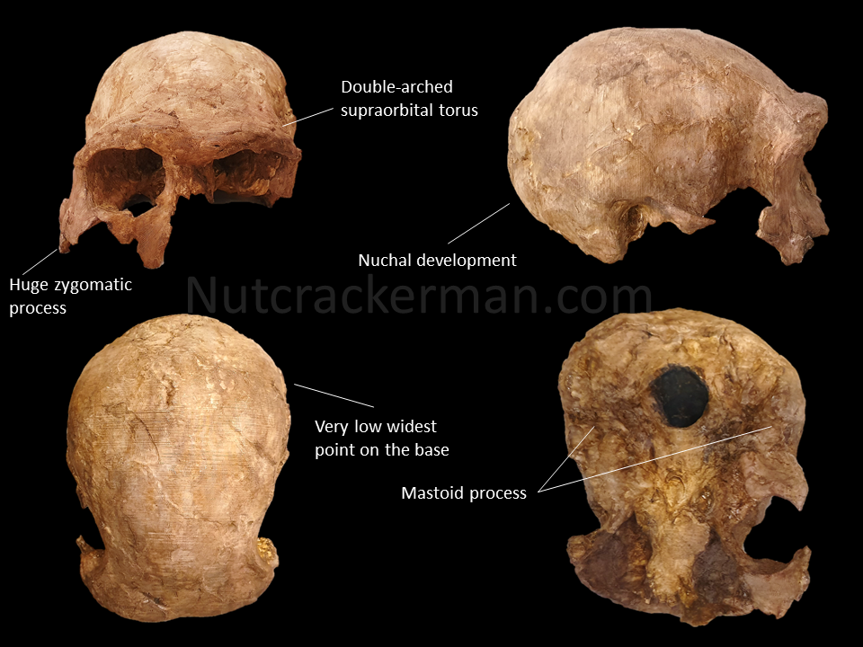 - Su capacidad craneal estimada es 804 cc, inferior al espécimen ER 3733 con el que suele compararse, de unos 850 cc (sobre este fósil ya escribí aquí). Aunque ambos especímenes suelen considerarse virtualmente contemporáneos, tal vez estén separados por unos 100 o 200 ka, tiempo muy relevante en términos de evolución.