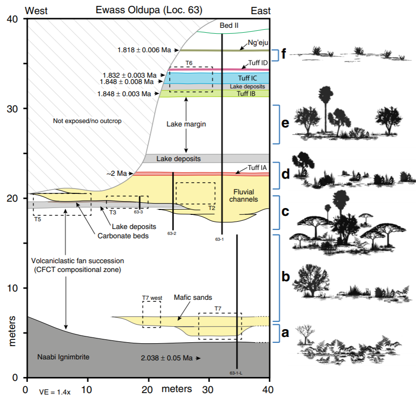 Outcrop geometry, stratigraphic architecture, and idealized vegetation at Ewass Oldupa. Source: Mercader J et al (2021).