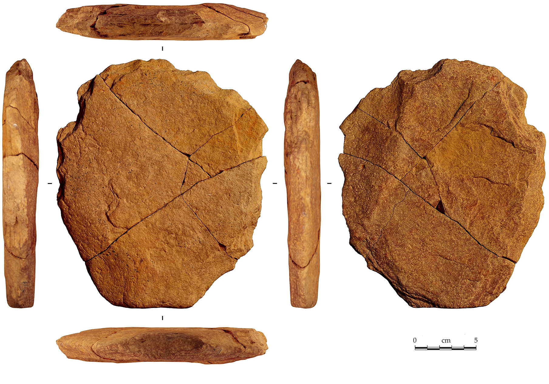 - Se ha propuesto que esta herramienta de unos 350 ka procedente de la cueva de Tabun (Israel), era utilizada por los homininos para tareas de abrasión mediante sus superficies anchas y planas. Sería el artefacto más antiguo conocido para este tipo de uso, superando a otras herramientas de hace 200 ka y registros más amplios a partir de hace 50 ka [+info].