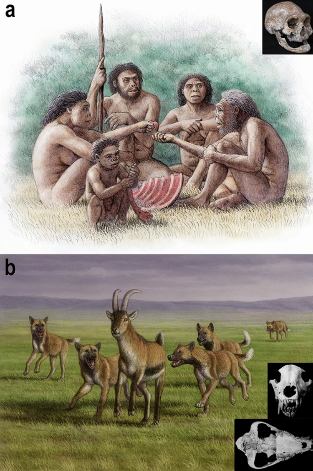 Se ha presentado el primer gran cánido del yacimiento de Dmanisi Canis (Xenocyon) lycaonoides, que siguió una ruta paralela pero en sentido contrario a los homininos (el licaón llega a África e incluso a Norteamérica, mientras que el hominino se expande por Europa hacia el oeste). Y ambas especies comparten un importante comportamiento social: la atención y cuidado con sus congéneres, representados por el dueño del cráneo 4 desdentado de Dmanisi, y por un licaón de Venta Micena con varias anomalías y problemas dentarios, que requirieron ayuda de su grupo durante un largo periodo de tiempo para ser alimentados [+info]. «Este comportamiento les permitió a ambas especies colonizar el mundo», en palabras de Bienvenido Martínez-Navarro, coautor del estudio.