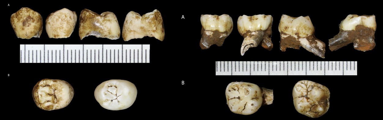 One of Leti’s unemerged permanent premolar teeth (L). One of Leti’s deciduous or “baby” teeth (R). Credit: Wits University