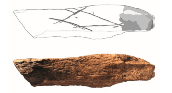 - Se han documentado importantes innovaciones en una capa de al menos 70 ka de antigüedad en el abrigo sudafricano Diepkloof: un romboide grabado sobre el hueso de un ungulado, el calentamiento de roca de forma extensiva para facilitar su descamado y la producción de bladelets y piezas bifaciales, y el uso de adhesivos [+info].
