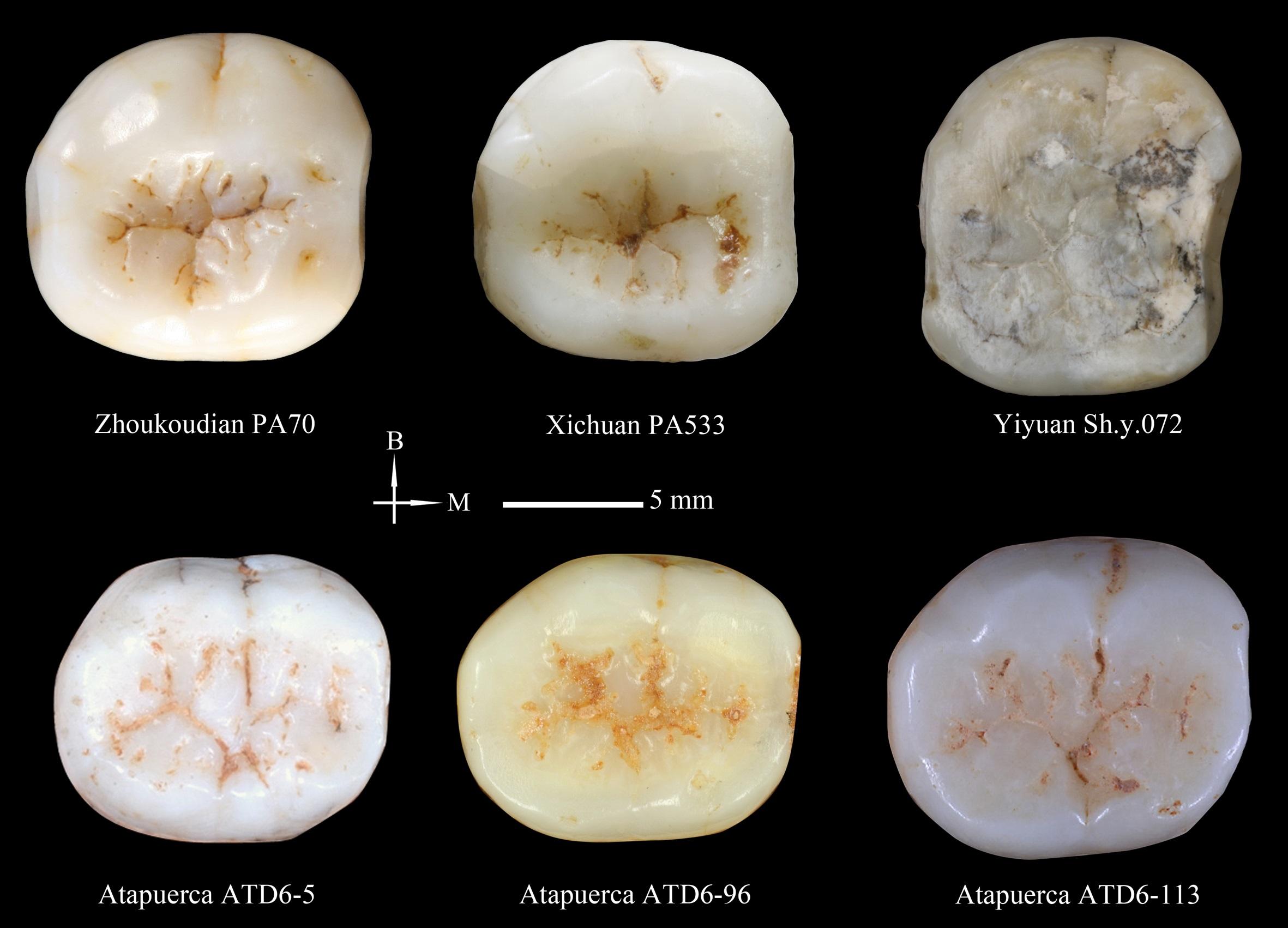 - La comparación entre los dientes de Homo antecessor de Gran Dolina (Atapuerca) y de Homo erectus de los yacimientos chinos de Hexian, Xichuan, Yiyuan y Zhoukoudian, arroja diferencias muy claras relacionadas con la distancia que les separa, tanto temporal (300.000 años) como geográfica (9000 km), pero también comparten algunos caracteres, lo cual indica un probable ancestro común muy antiguo entre ambas especies. Esto refuerza una vinculación entre los escenarios evolutivos de Asia y de Europa tras la primera expansión humana por Eurasia hace más de 2 Ma. Desde entonces, distintas oleadas migratorias iban poblando el este asiático según variaba el clima. La hipótesis es que uno de esos grupos proveniente de Oriente Próximo hace 1 Ma, cuyos descendientes serían los erectinos mencionados, tendría un ancestro común con Homo antecessor [+info].