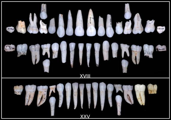 Dientes pertenecientes al individuo XVIII (arriba) y XXV (abajo) de la Sima de los Huesos. Crédito: Mario Modesto Mata