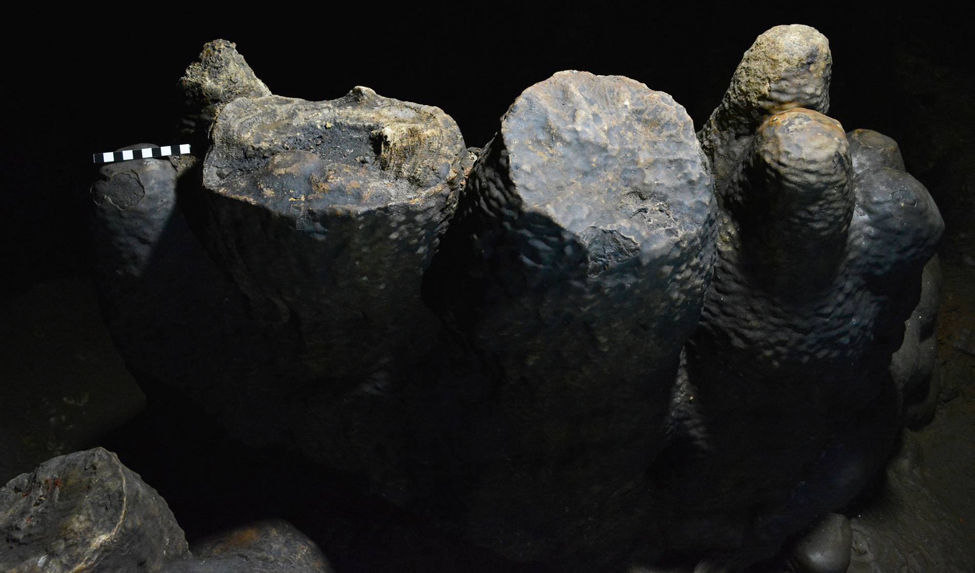 Cueva Ardales. Estalagmita usada como lámpara estacionaria durante el Epipaleolítico. Crédito: J. Ramos-Muñoz et al (2022).