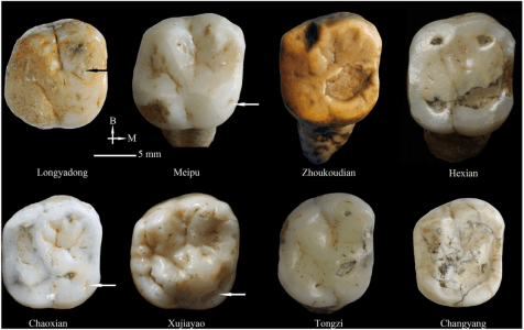 - Se ha publicado el estudio de un primer molar de hominino procedente de la cueva Longyadong, en China central, datado en 356.6-205 ka. Su comparación con otros dientes de Homo erectus esteasiáticos y de Homo arcaicos del final del Pleistoceno medio arroja una gran variabilidad, aparentemente divergente del linaje neandertal [+]