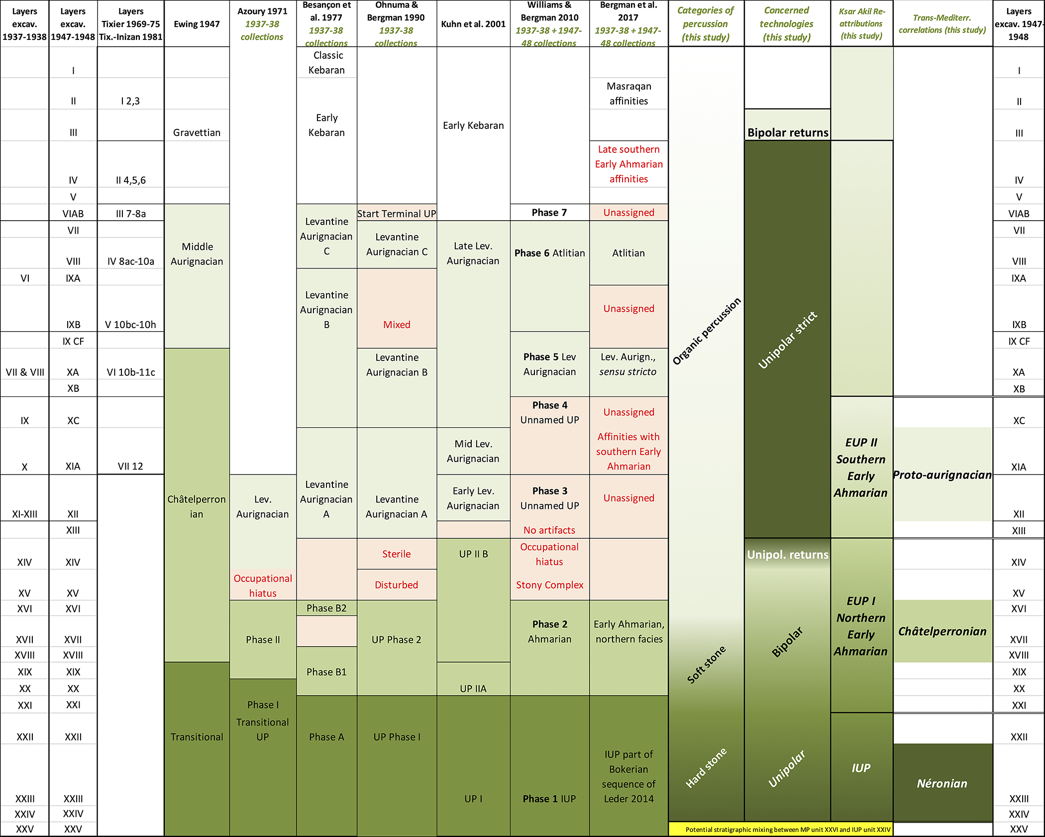 Summary of interpretations from the Ksar Akil sequence from 1947 to 2017. Credit: Slimak (2023)