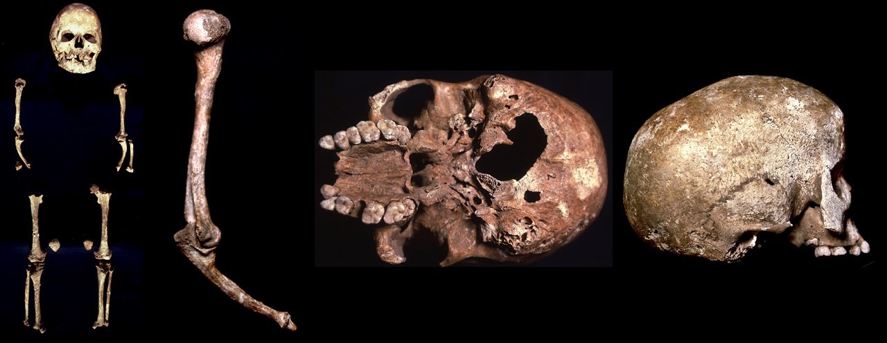 This skeleton was very well preserved (75%), and had a striking feature which is the short stature, 110-120 cm. In addition, it shows different pathologies, such as disproportion of its extremities and anomalies in the arms, wrists, hands, feet, vertebrae and skull. The etiology of short stature, macrocephaly and bone dysplasia correspond to an extreme form of dwarfism called acromesomelic dysplasia.