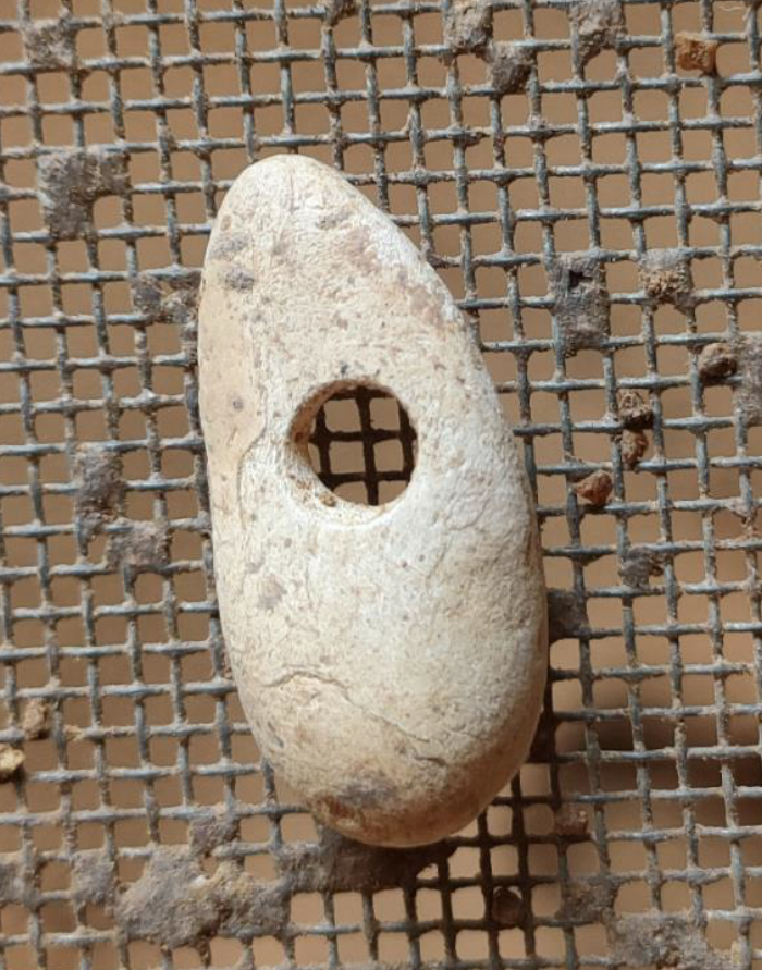 Cuenta de collar del período neolítico hallada en el Abrigo 6 de la Araña. Crédito: Asociación Yacimientos Arqueológicos de La Araña