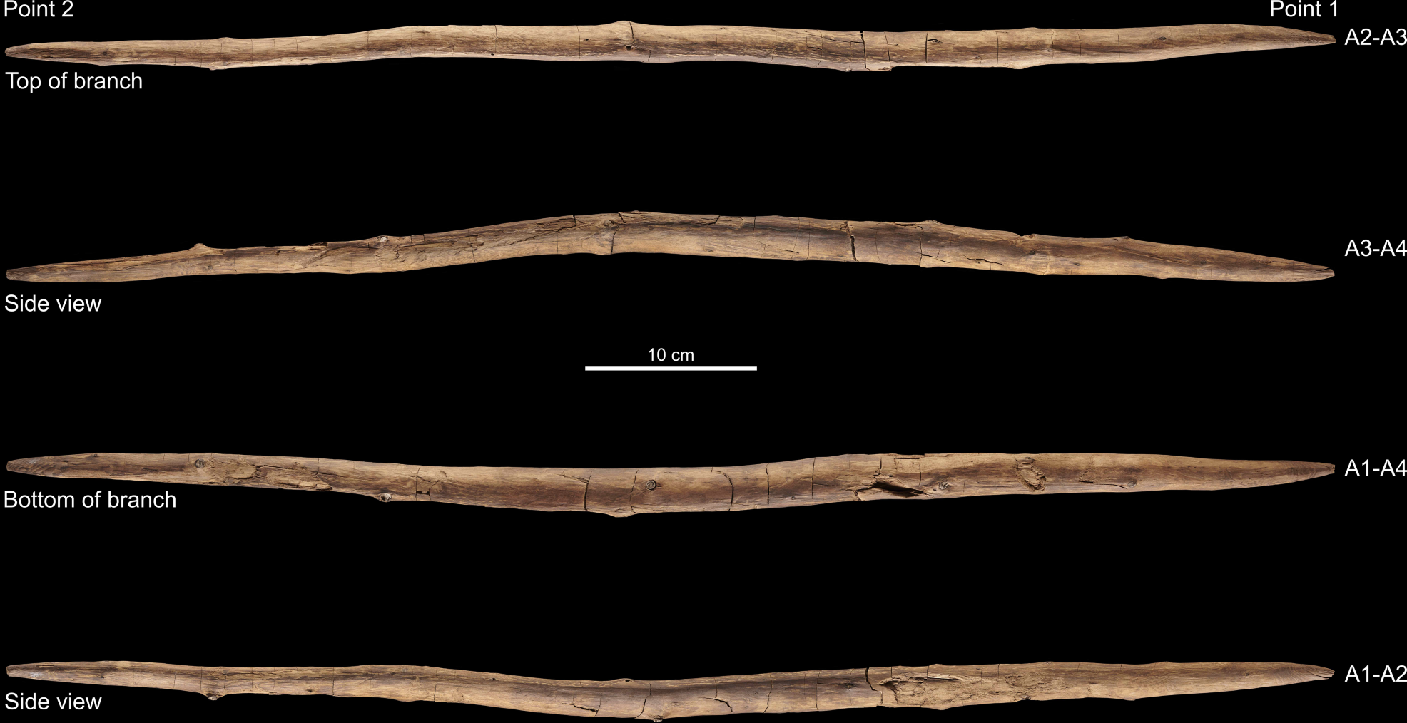 - Un nuevo objeto presentado de la magnífica colección de 12 palos y lanzas procedentes de Schöningen (Alemania), de unos 300 ka. Se trata de un palo de madera de doble punta, trabajado para dotarle de propiedades aerodinámicas y ergonómicas, lo que demuestra un gran conocimiento de las materias primas y destreza en el trabajo de la madera. La revisión etnográfica sugiere una función primaria como palo arrojadizo para la caza de grandes ungulados desde distancias de hasta 30 metros [+].