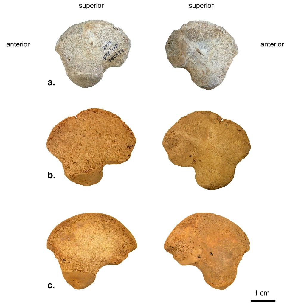 Ilion de AR-63 (a), del neandertal LM2 (b) y de un humano reciente (c). Crédito: Gicqueau, A. et al 2(