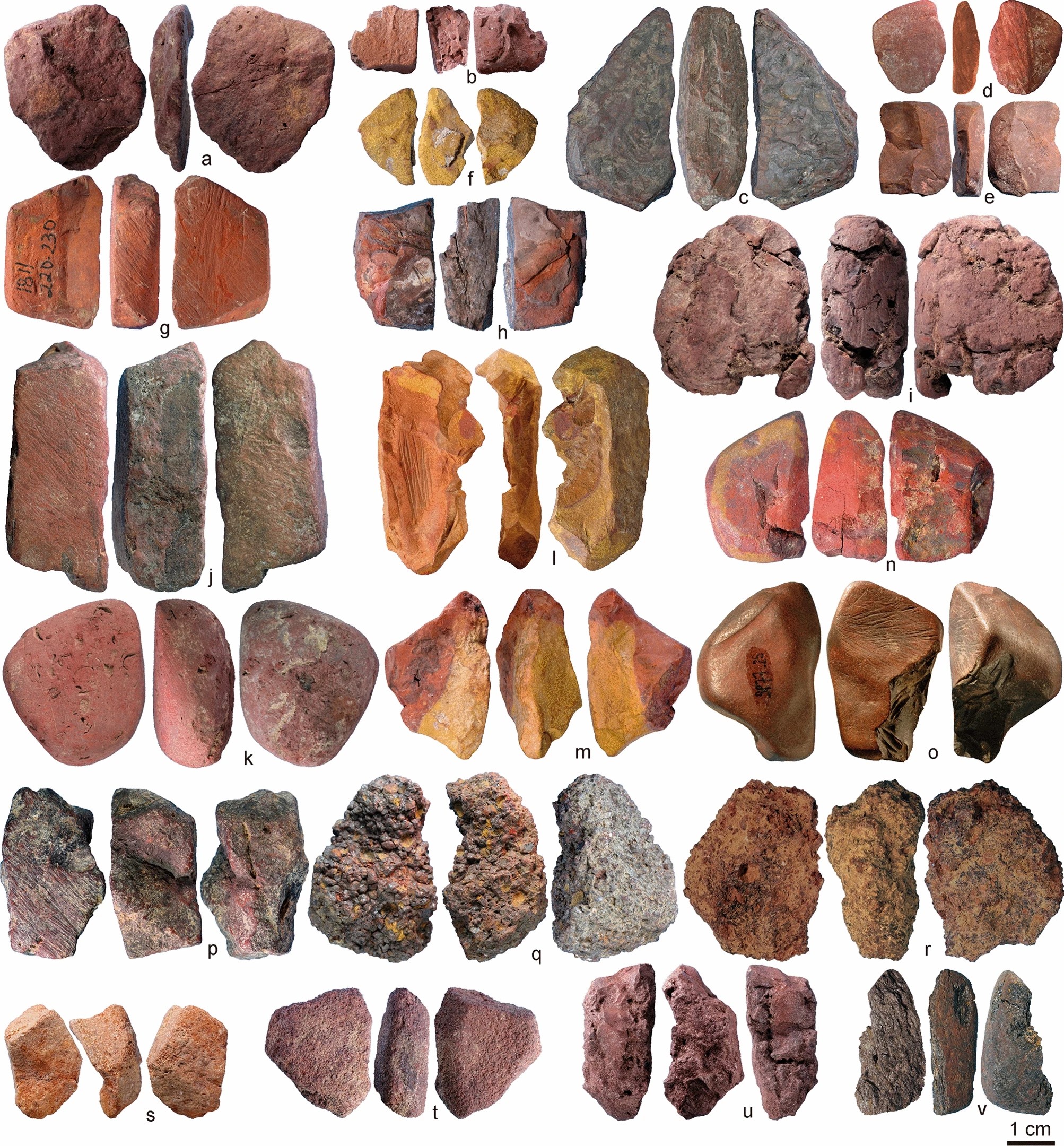 - Se ha logrado estudiar la evolución del uso del ocre durante 4500 años por los humanos de la Cueva Porc-Epic (Etiopía) hace unos 40 ka, a partir de una colección de 4213 piezas de ocre, que totalizan 40 kg. Hace 40 ka, los humanos recogieron y trasladaron una gran variedad de tipos de ocre para conocían bien, para producir polvo de diferentes texturas y tonalidades, probablemente adaptadas a diferentes actividades simbólicas o funcionales. Un tipo de ocre rojo se empleaba específicamente con fines simbólicos [+].