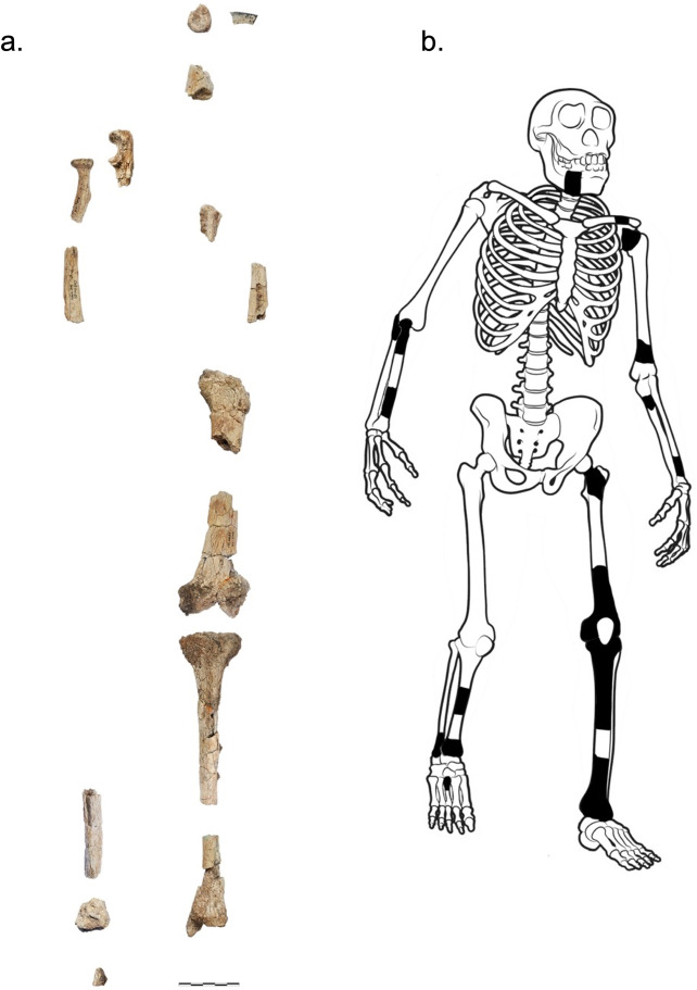 15 fragmentos que componen el esqueleto parcial KNM-ER 1500, atribuido a P. boisei. Crédito: C. Ward et al (2023)