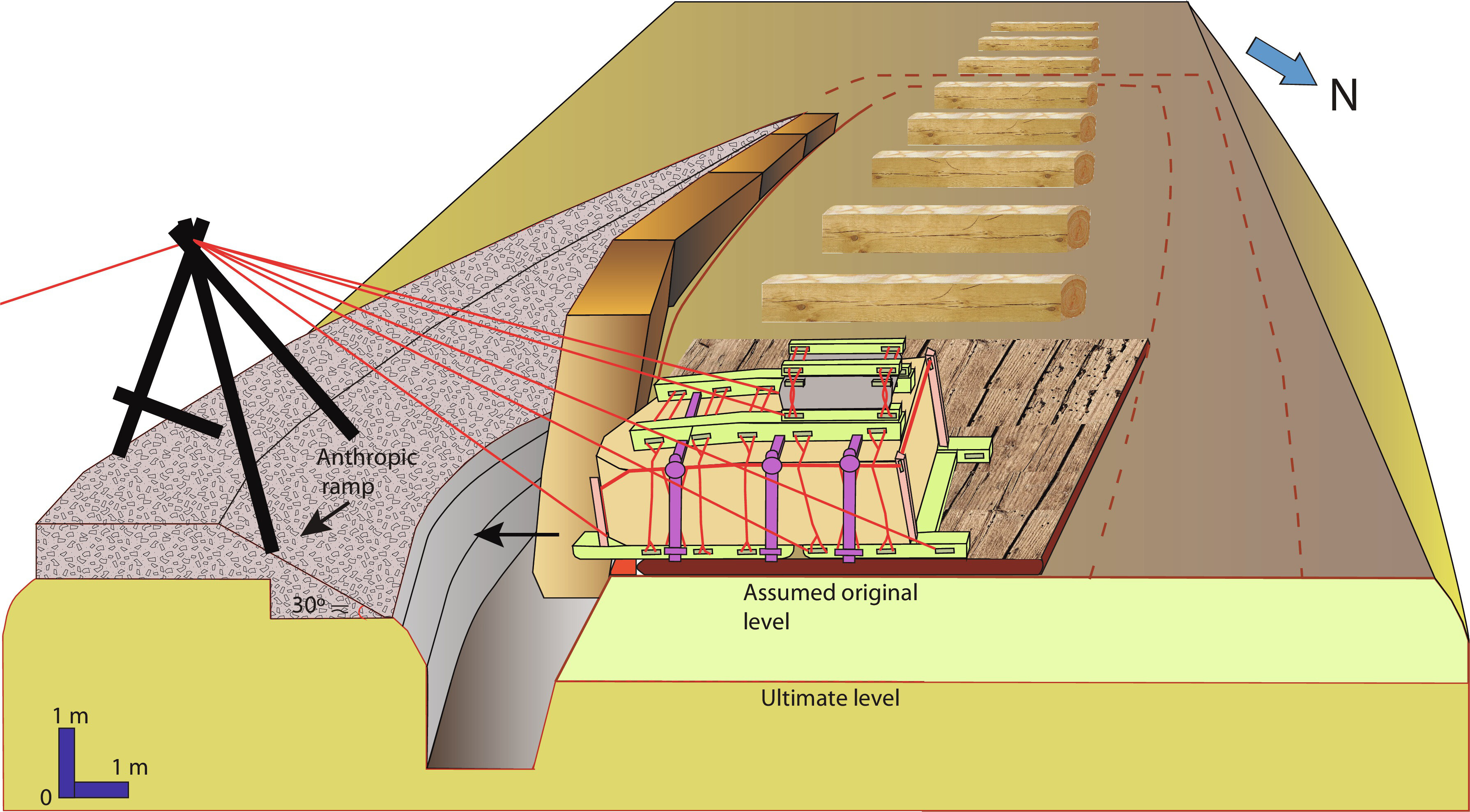- Se construyen rampas suaves amontonando tierra y piedras por las que desplazar y descender las losas hasta encajarlas en las cimentaciones. Los ortostatos deben quedar cimentados entre 1,5 y 2,2 m en el suelo.