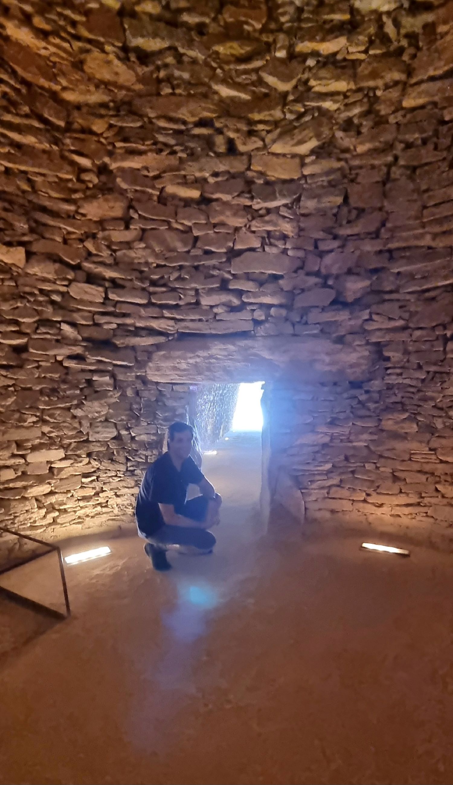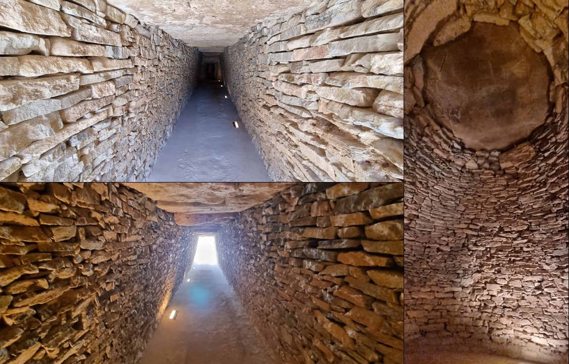 En el solsticio de invierno, cuando el Sol está en su punto más elevado, la luz entra hasta la primera cámara funeraria, pero no la segunda, que está a 10º de inclinación respecto a la primera.