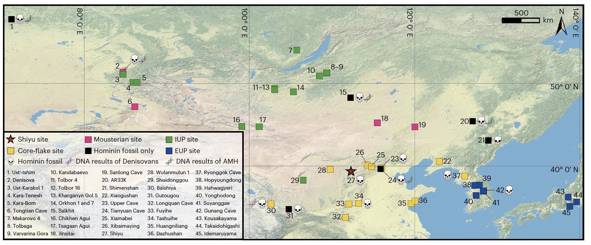 Yacimientos del Paleolítico superior en el este asiático. Crédito: Yang, SX., Zhang, JF., Yue, JP. et al. (2024)