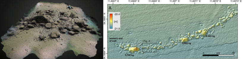- Se ha presentado una megaestructura, denominada Blinkerwall, construida hace unos 10 ka en la Bahía de Mecklenburg (Alemania) y conservada a 21 m bajo el agua en el mar Báltico occidental. Está formada por 1673 piedras individuales de menos de 1 m de altura, colocadas una al lado de la otra a lo largo de una distancia de 971 m [+]. La zona era ya conocida por el hallazgo de restos arqueológicos submarinos.