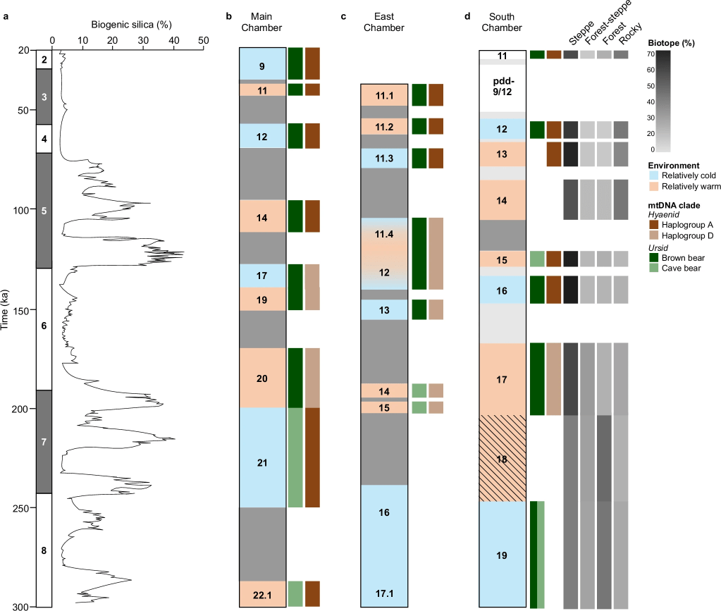 Es destacable la aparición de un linaje denisovano derivado en niveles datados en torno a 80 ka, que podría haberse originado tras el intercambio genético con neandertales en la región. La transición ocurre desde secuencias ADNmt tipo Denisova 2/8 (anteriores a 150 ka) a secuencias tipo Denisova 3/4 (posteriores a 80-100 ka). El registro de ADN sedimentario de los denisovanos después de los 80 ka es mucho más abundante.