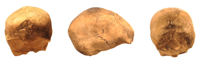 Skhul 1 fue el primer fósil descubierto en la cueva. Se trata del cráneo de una niña de 3 a 5 años. Su antigüedad se estima en unos 140 ka (miles de años). El nuevo estudio (Bouvier et al., 2025) combina técnicas de escaneo microtomográfico, reconstrucción digital y análisis morfométrico para examinar su anatomía, dentro de un marco ontogenético en comparación con una muestra de cráneos infantiles de H. sapiens modernos, neandertales y H. erectus.