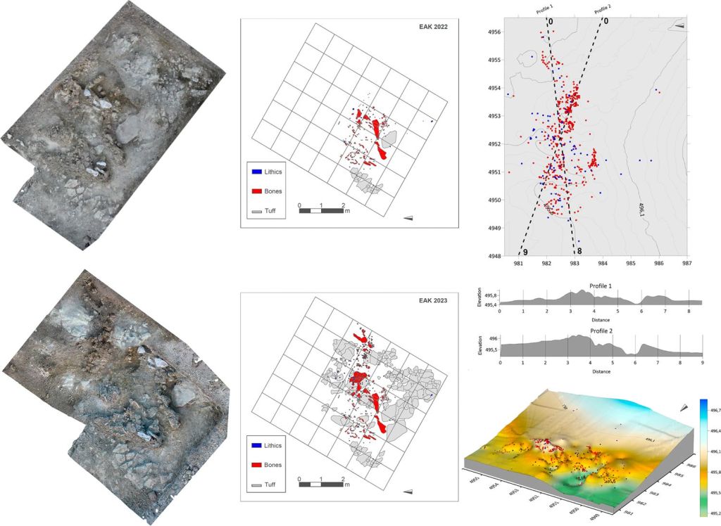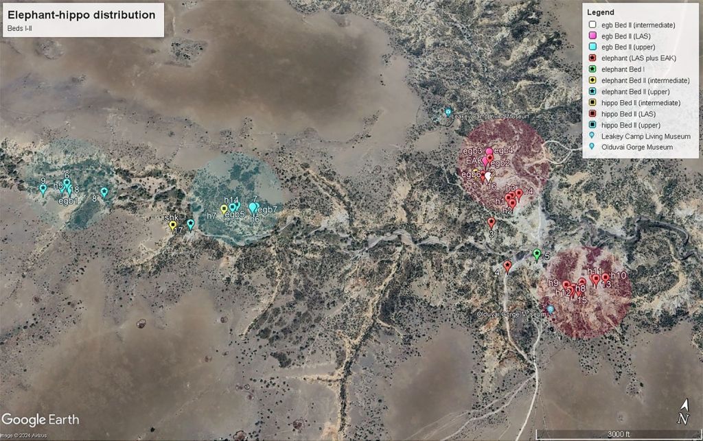Más allá del elefante de EAK, el estudio amplía el análisis a otros sectores de los lechos I y II de la garganta. A partir de 1,78 Ma aumentan las evidencias de explotación de megafauna, especialmente de proboscídeos e hipopótamos, en contextos que también muestran ocupaciones líticas más extensas y complejas:
