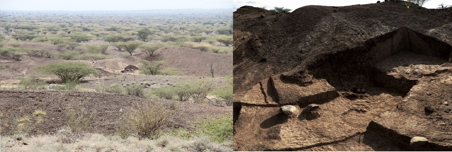 Lomekwi-3 site (I) and zoom to the excavation (R) – yes, what you see are some of the famous stones!