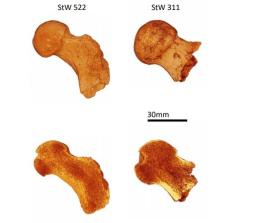 - Siempre es un gran noticia añadir un fósil nuevo al registro. En este caso, se ha presentado el hueso calcáneo KW 6302 procedente de la Unidad P de Kromdraai (Sudáfrica), de unos 2 Ma. Tiene una morfología intermedia entre la de humanos y la de primates no humanos, aunque más próxima a la forma humana, bien adaptada a la bipedación terrestre. Los homininos de Kromdraai se atribuyen a Paranthropus robustus o bien a Homo así que, comparándolo con el calcáneo de Omo (Etiopía), si el de Omo es de un parántropo, entonces KW 6302 sería probablemente de un Homo (o viceversa) [+info].