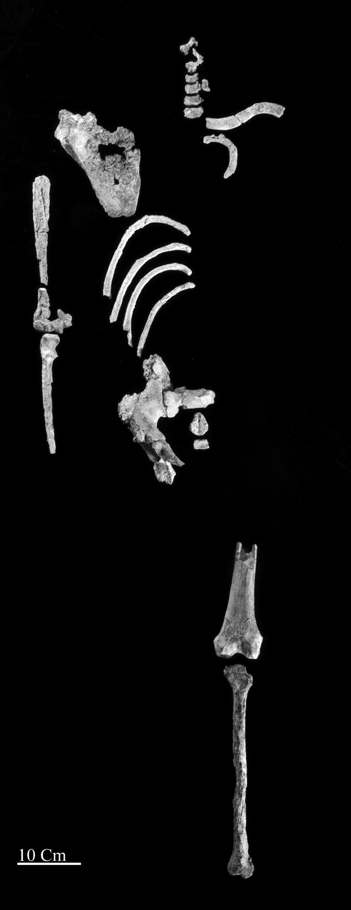 • La única tibia completa en el registro fósil de Au. afarensis, que muestra unas piernas relativamente largas y una proporción entre extremidades inferiores y superiores menos simiesca de lo que se pensaba. El alargamiento de las piernas pudo ya comenzar un millón de años antes de los primeros Homo, y dos millones antes del desarrollo completo que observamos en Homo ergaster como el Chico de Turkana.