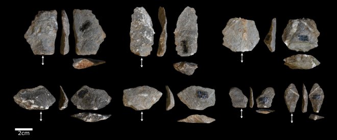 Examples of sharp edged flakes produced unintentionally by long-tailed macaques. Credit: Proffitt et al (2023)
