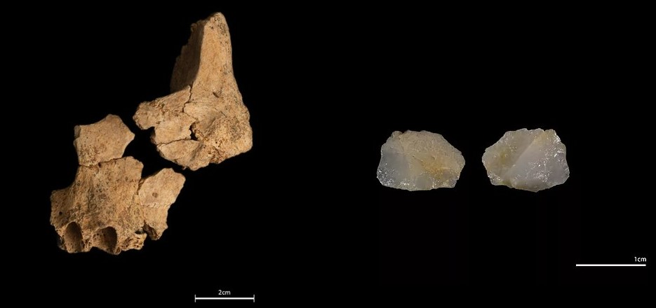 Cara parcial y lasca procedentes del nivel TE7 de Sima del Elefante. Crédito: María Dolors Guillén